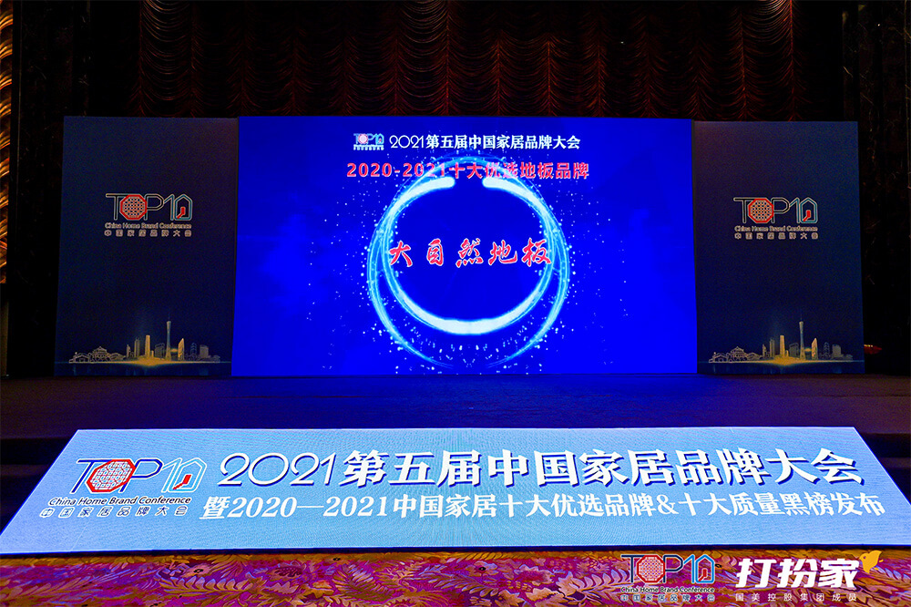 2021年7月19日下午,2021第五届中国家居品牌大会在广州隆重举行,公开发布“2020-2021中国家居十大优选品牌”36个榜单,大自然家居旗下大自然地板品牌强大的品牌综合实力与口碑,荣膺“2020-2021十大优选地板品牌”称号。