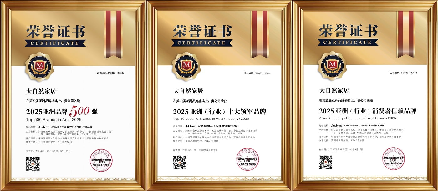 同时,凭借深厚的品牌积淀与卓越的市场表现,大自然家居跻身亚洲品牌500强,这份荣誉是品牌实力的硬核见证,更是千万消费者口碑的长期沉淀,成为品牌穿越周期的坚实底气。