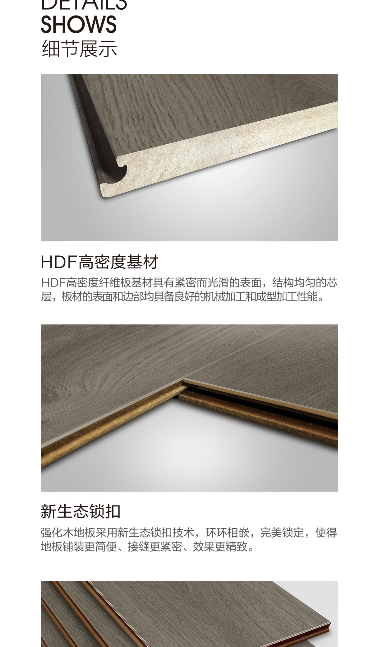 | 产品基材 | HDF高密度环保基材 |