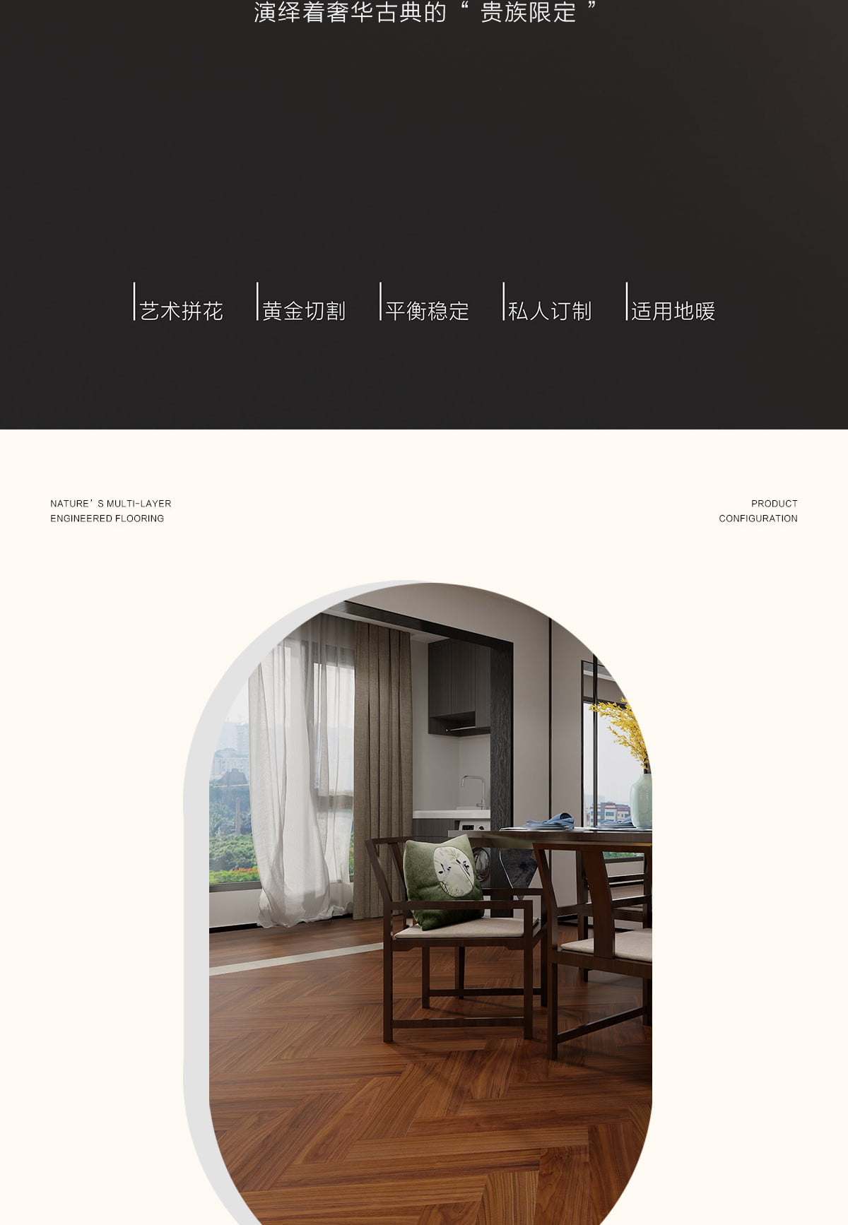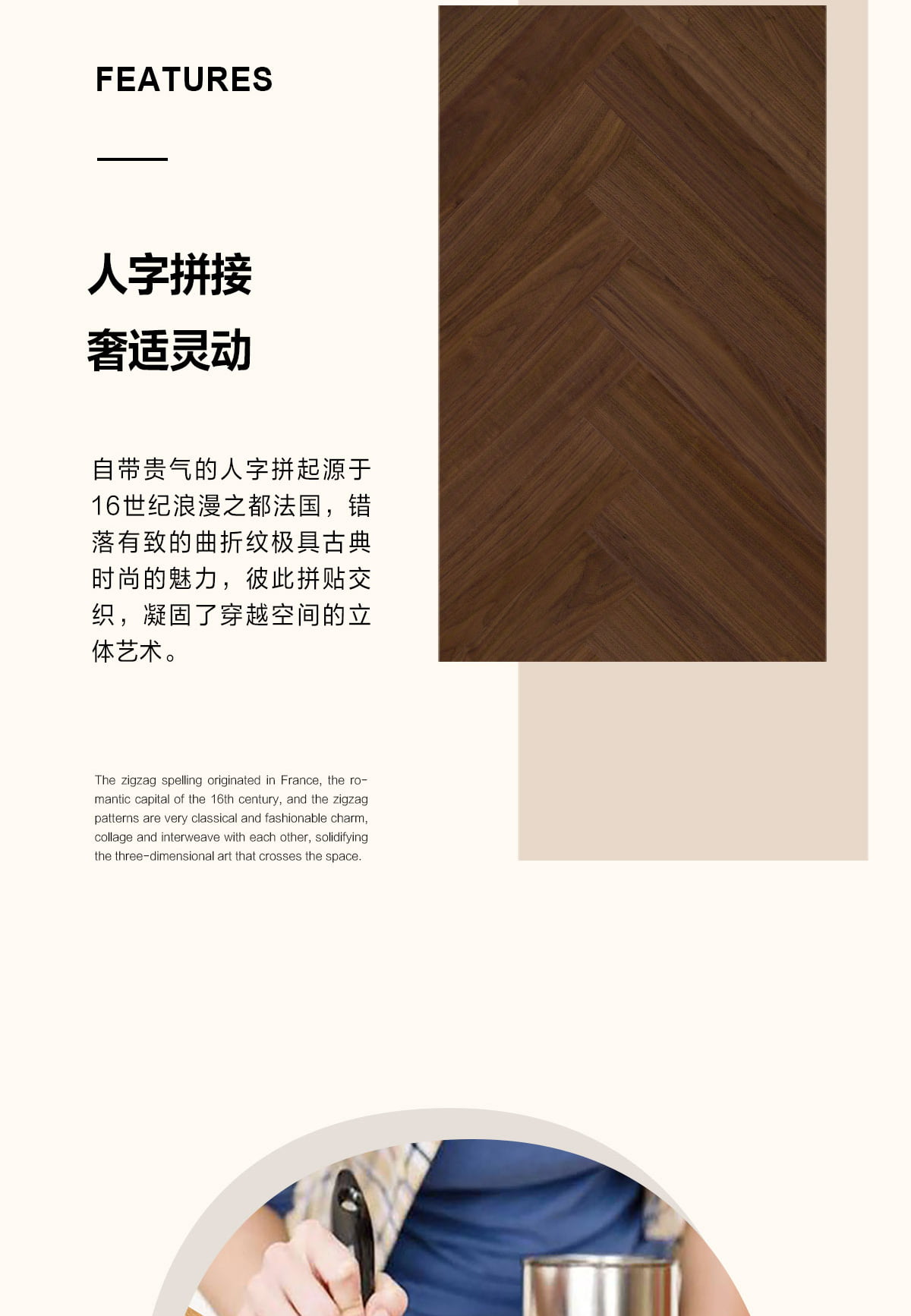 | 独特工艺 | 人字拼 |