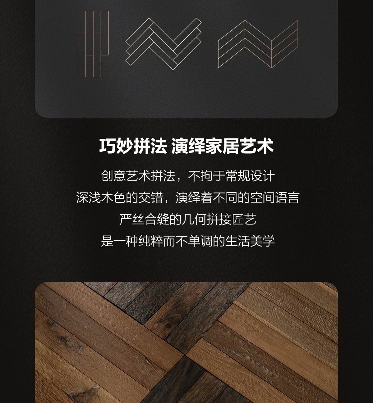 | 独特工艺 | 人字拼 |