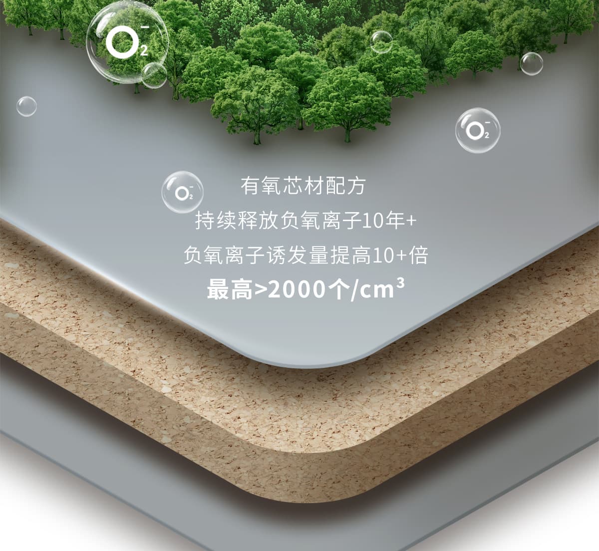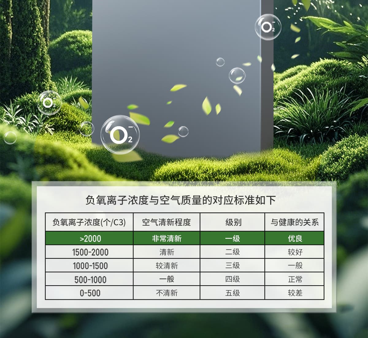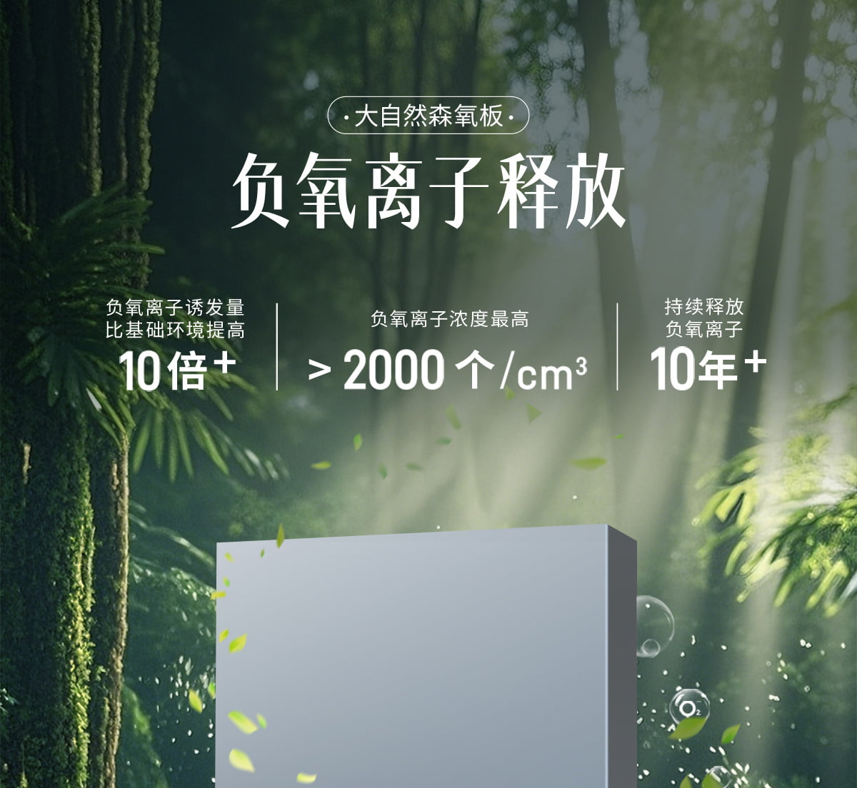 | 诱发空气负离子量 | 比基础环境提高10倍+ |